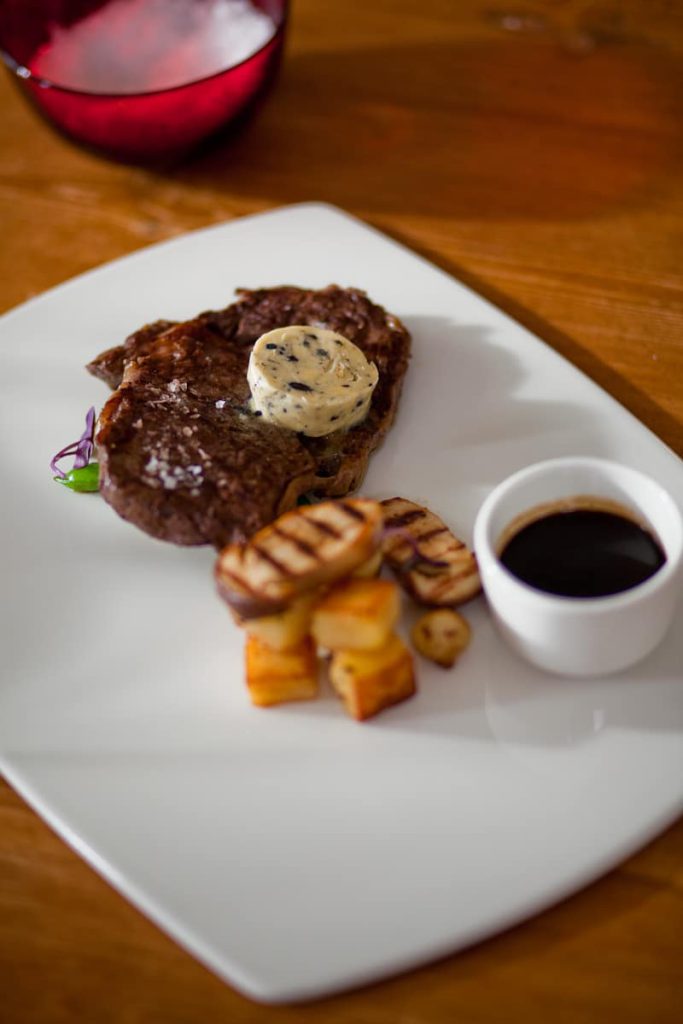 Leikkaa lihat ja anna olla huoneenlämmössä muutama tunti. Paista grillipannussa tai grillissä n, 2-3 minuuttia molemmin puolin ja anna vetäytyä foliossa 5-10 minuuttia.